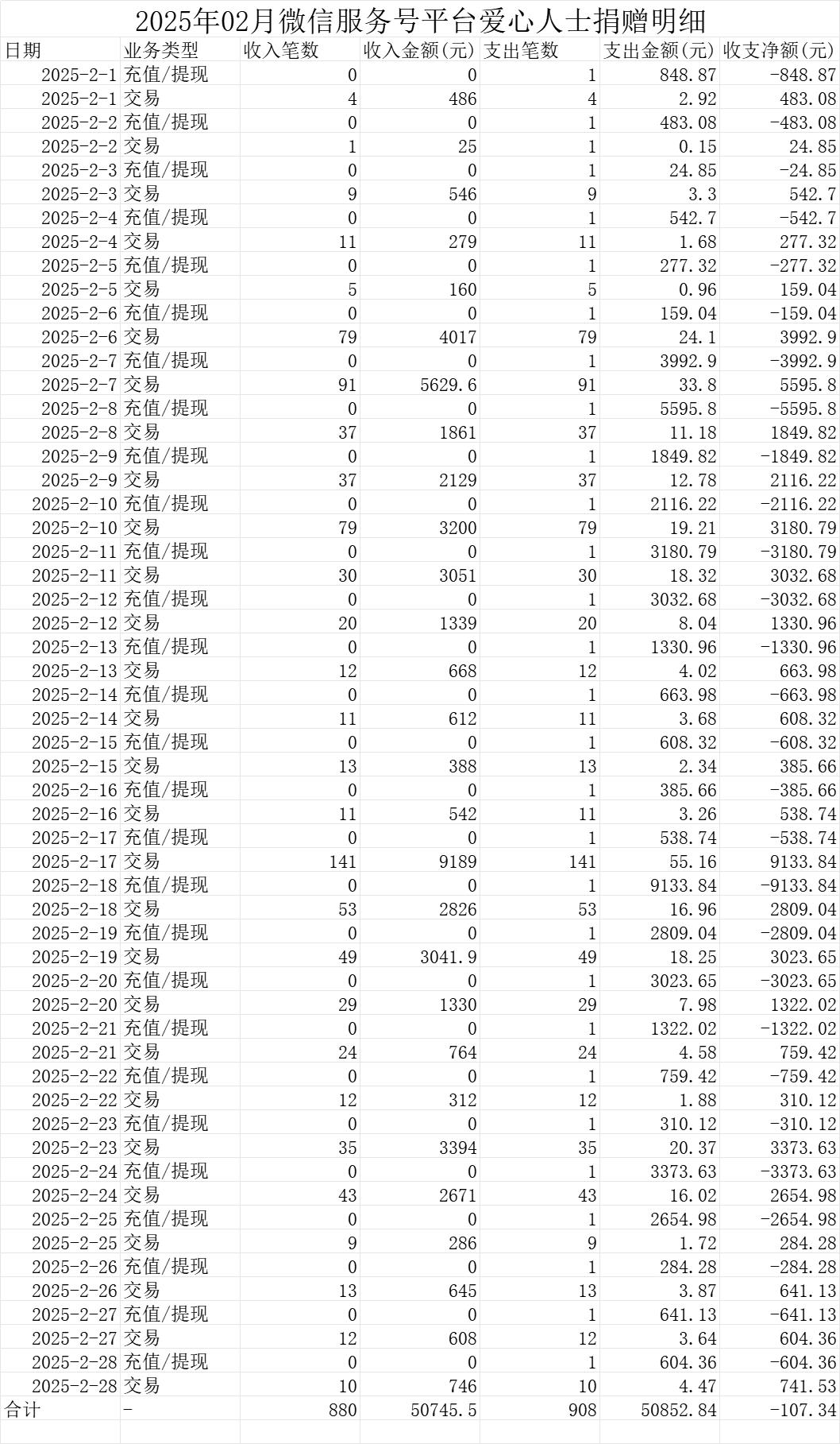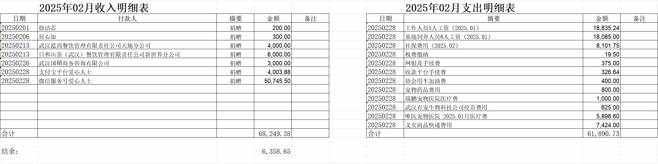 2025年02月收入及支出明细